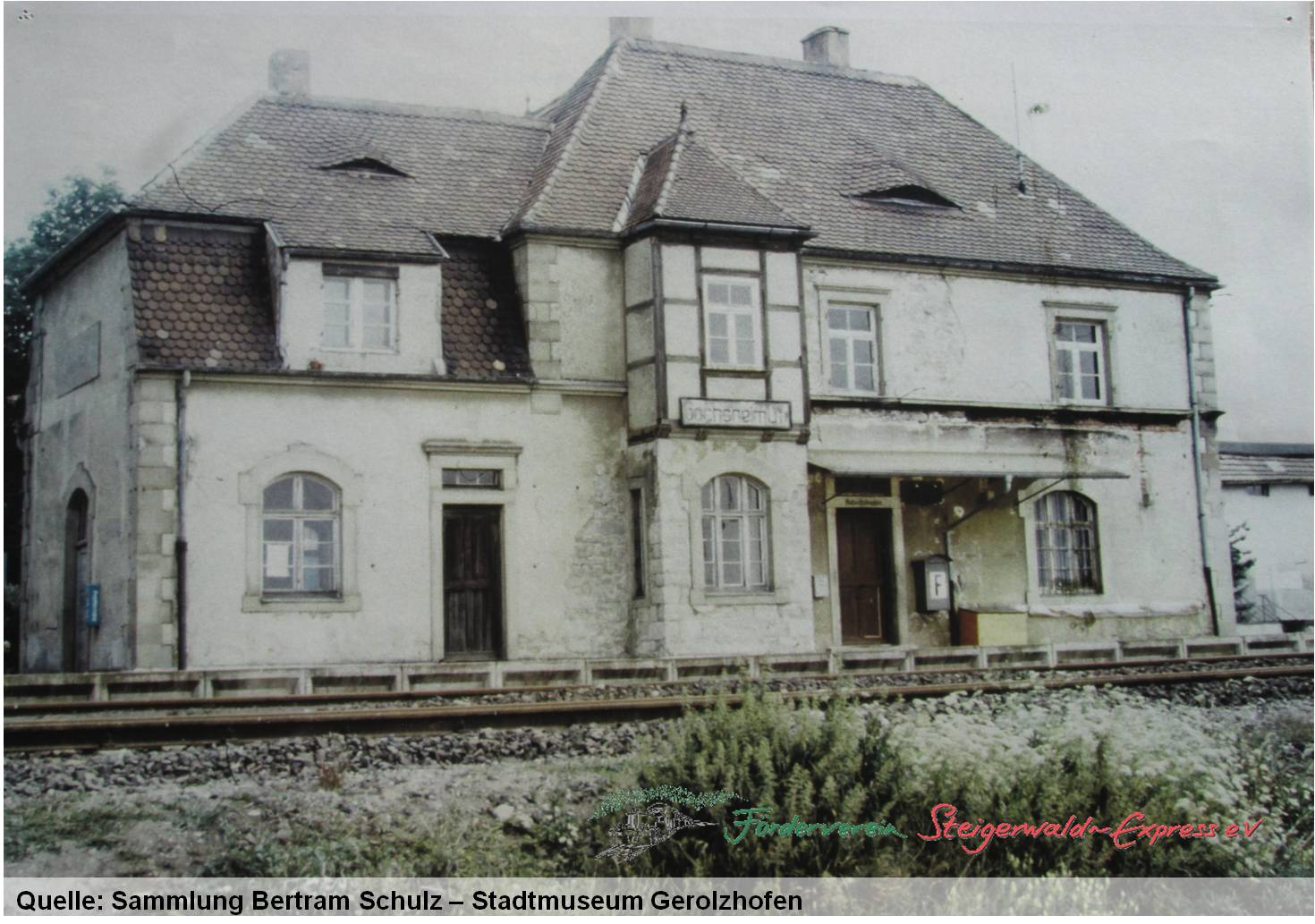 Nachdem 1972 der Güterschuppen abgebrannt war, riss man im Dezember 1979 das große massive Empfangsgebäude ab. Der Fahrdienstleiter wurde schon im Sommer 1978 abgezogen. Ein Lade- und ein Umfahrgleis boten zuletzt noch Platz für gelegentliche Holzverladung, aber insbesondere für das Verladen von Behältern mit „abgebrannten“ Brennstäben aus dem in der Nähe liegenden Atomkraftwerk Grafenrheinfeld.