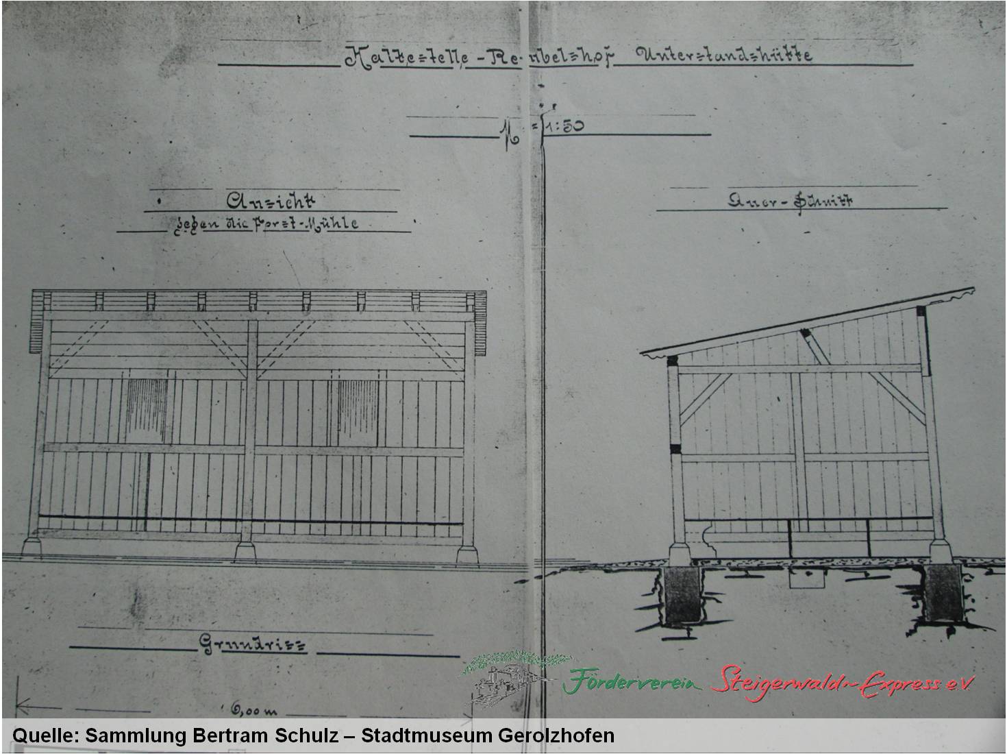 Der Haltepunkt Reubelshof – eine Unterstandshütte aus Holz – befand sich in der Nähe des gleichnamigen Gutshofes, der einst zum Besitz des Würzburger Juliusspitals gehörte. Später wurde das Unterstandshäuschen um 800m Richtung Kitzingen verlegt (wahrscheinlich nach Ausbau des Militärflughafens in den 1930er-Jahren). Die Gebäude des Gutes Reubelshof wurden beim zweiten Luftangriff auf Kitzingen am 22. März 1945 zerstört. Der Haltepunkt (gegenüber der Straße zum Haupteingang der US-Army-Kasernen) bot bis zum Sommer 1964 eine Zusteigemöglichkeit. Angeblich wurde der eingelegte Holzunterstand von privater Hand als „Gartenhäuschen“ wieder aufgebaut.